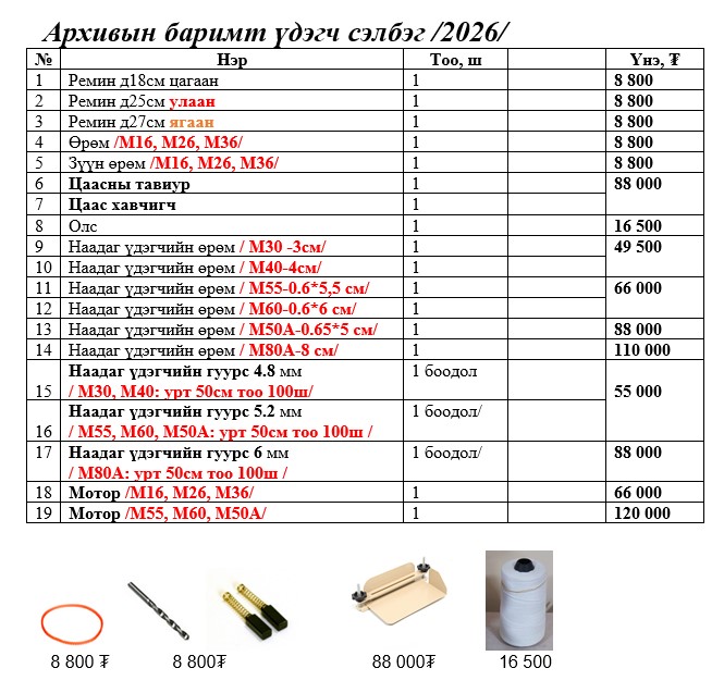 Архивын баримт үдэгч машины сэлбэг /2024/